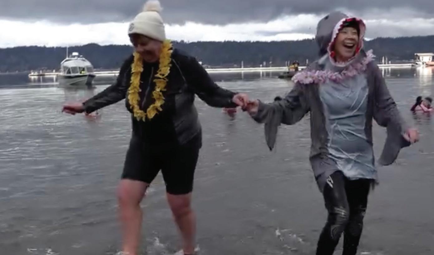 Many plunges support nonprofits or youth programs. Others, like the ones here, also help highlight winter tourism on Hood Canal. In addition to lodging at the Alderbrook for the plunge there, the Explore Hood Canal site has further listings of local hotels and short-term rentals, many with beach access.