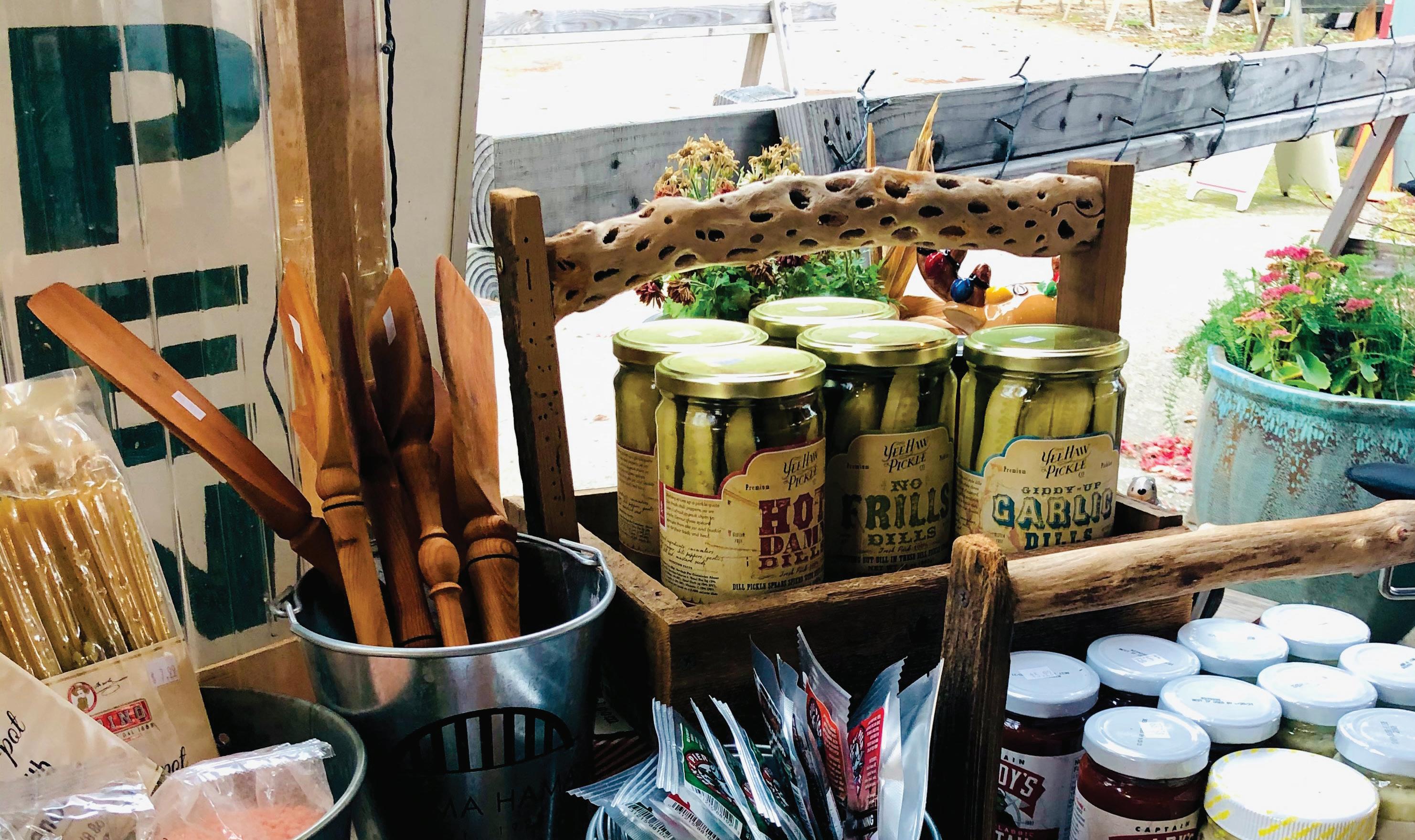 Art, gifts, seafood and grocery items and seasonal cafe within a working marina.