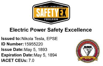 The Electric Power Safety Excellence course walks safety professionals through some basics of power delivery work. Students will learn about several topics including the electrical grid, rigging practices, and working in elevated positions. Students will also experience basic line work with tasks such as operating equipment, using line tools, and examining electrical devices. The capstone project for this course involves a mock job site observation using new found power delivery understanding. Trainees who successfully complete this course will be able to designate themselves as EPSE certified.