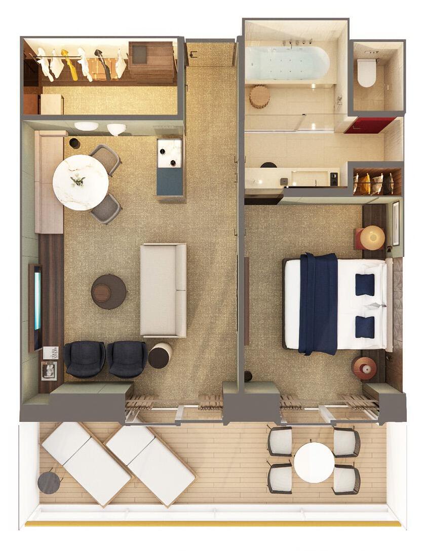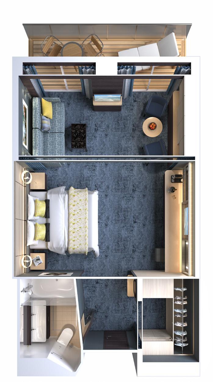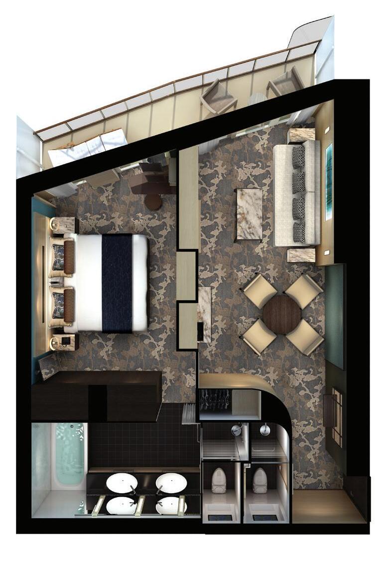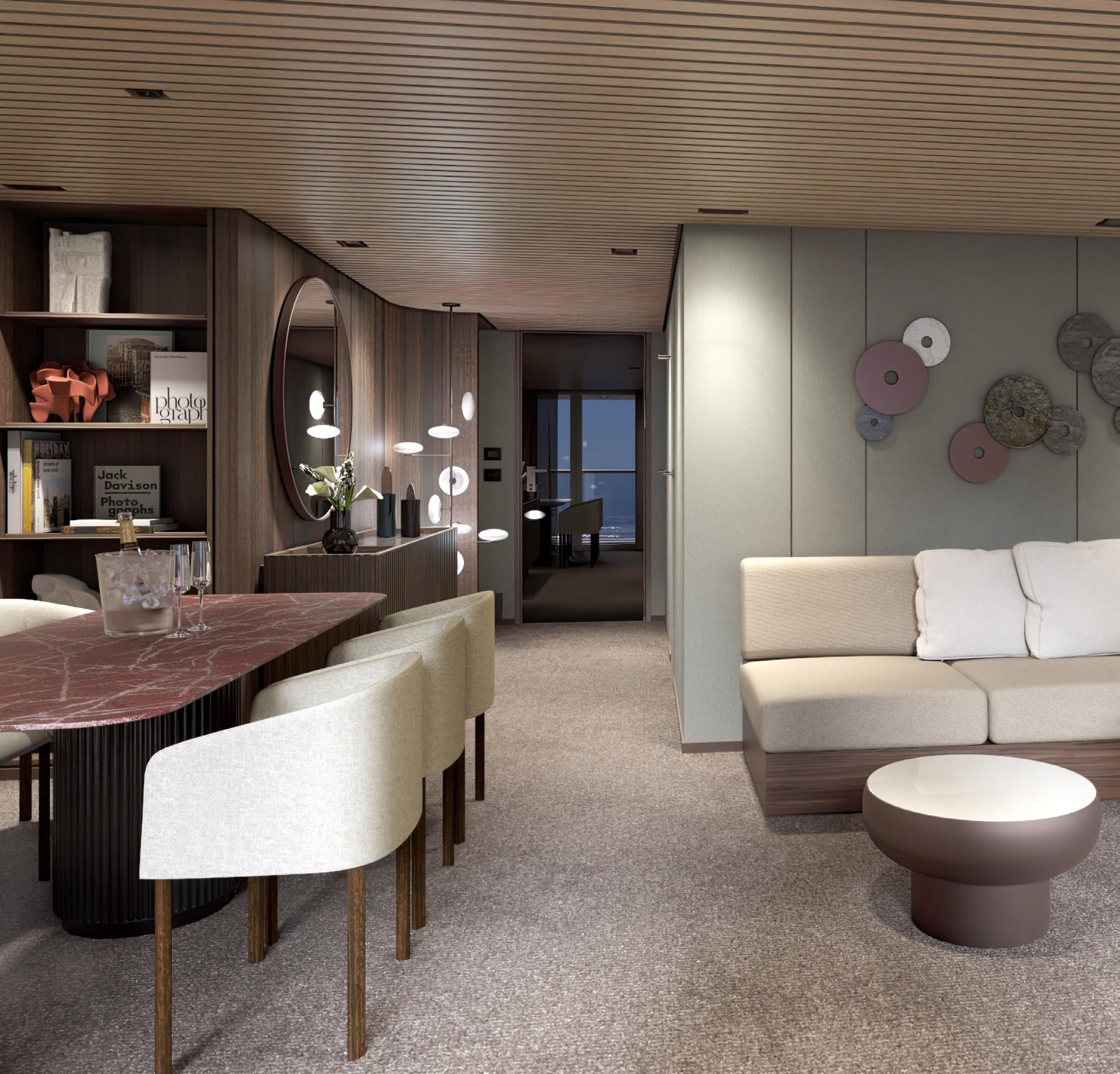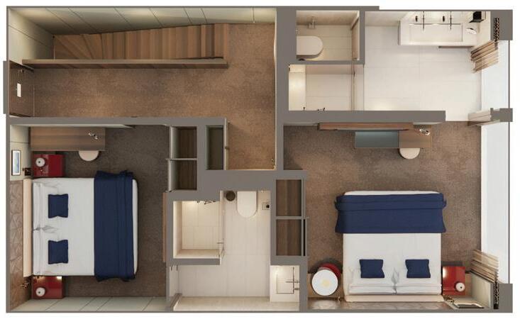 Descubra nossa primeira Suíte Duplex a bordo do novo Norwegian Aqua. Projetada com uma atmosfera elegante, porém descontraída, é um oásis idílico à beira-mar após um longo dia de exploração. As portas deslizantes do chão ao teto se abrem para uma varanda privativa de grandes dimensões com vistas deslumbrantes do horizonte, enquanto a sala de estar e as salas de jantar separadas oferecem isolamento adicional e espaço para se espalhar.