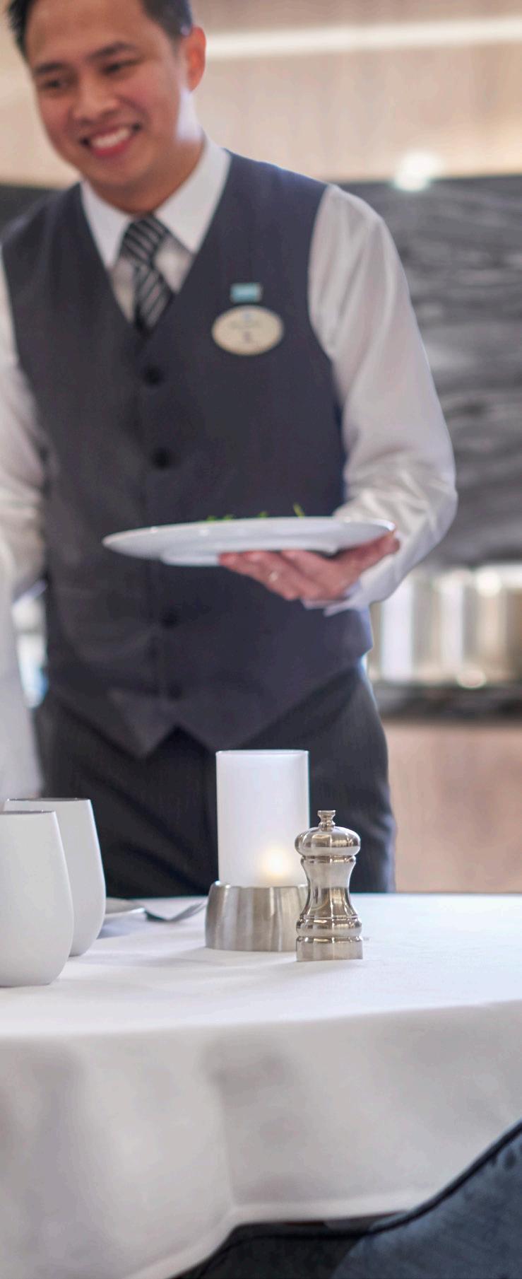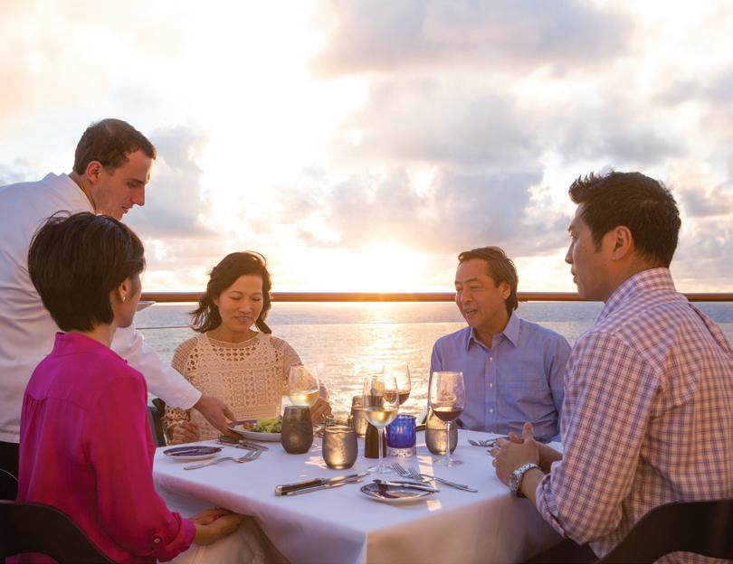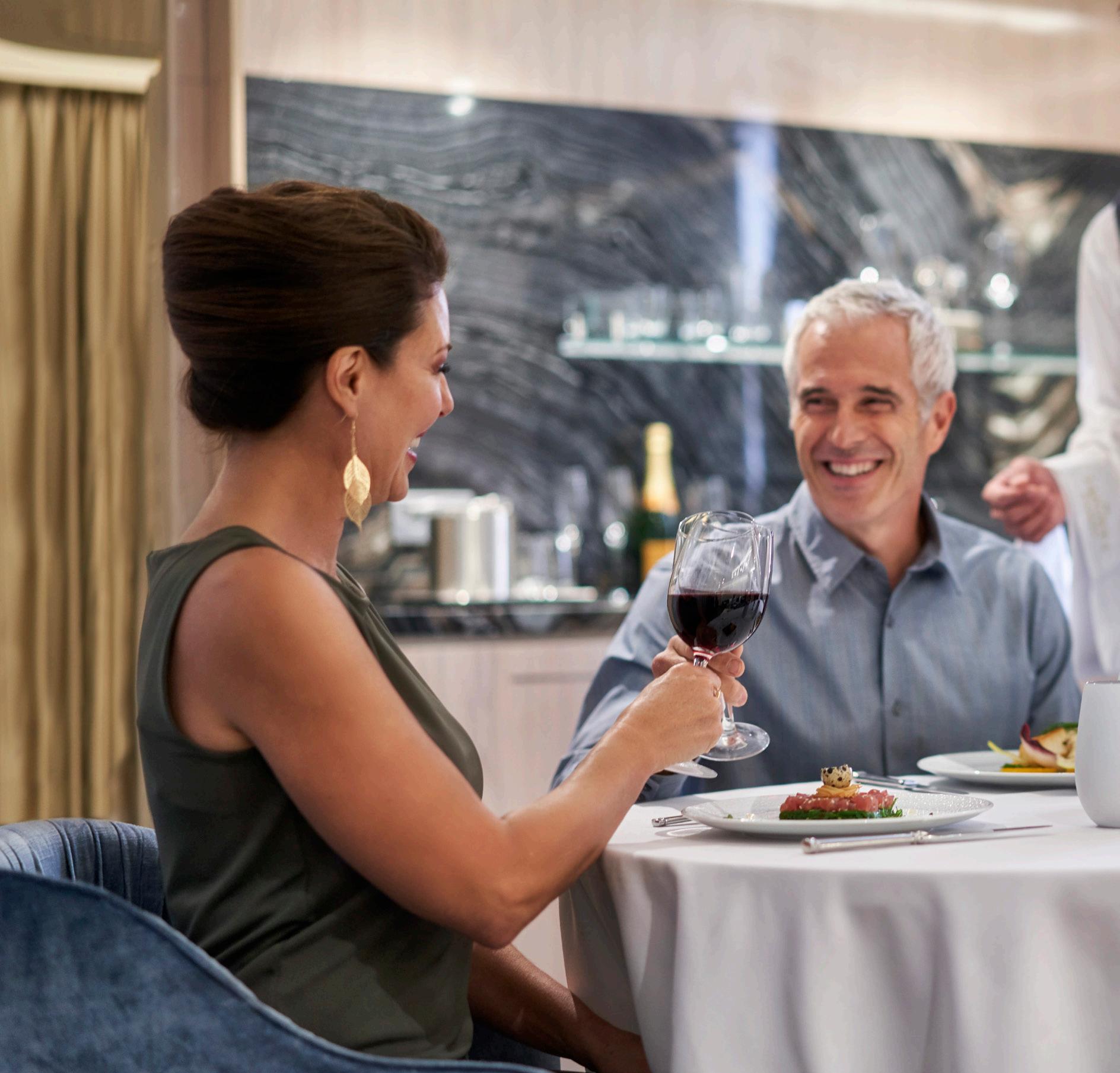 Delicie-se com os Restaurantes de Cortesia, seja para se reunir em uma deliciosa refeição de quatro pratos ou mantê-la casual em nosso bufê feito sob medida. Deseja elevar o nível da sua noite? Deliciese em nossos Restaurantes de Especialidade, com menus infantis gratuitos para menores de 12 anos. Com mais opções de refeições do que dias de cruzeiro, há muito o que escolher, até mesmo para os paladares mais exigentes.