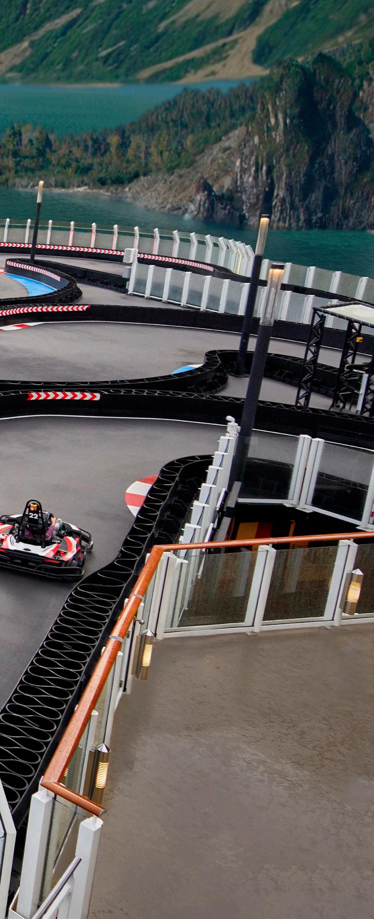 Há bastante tempo para desfazer as malas, então comece a explorar todas as coisas interessantes para fazer. Sinta a adrenalina ao acelerar na única pista de kart no mar. * Tome um pouco de sol enquanto desce por emocionantes toboáguas. *Jogue uma partida amigável de basquete no meio do oceano. Faça uma massagem com pedras quentes ou escolha sua própria pedra preciosa em uma excelente boutique de joias. Esteja você disposto a fazer algo emocionante ou relaxante, viva férias tão abertas quanto o mar ao seu redor.