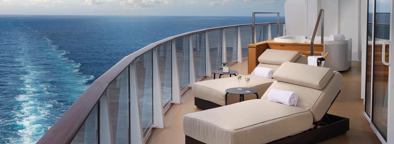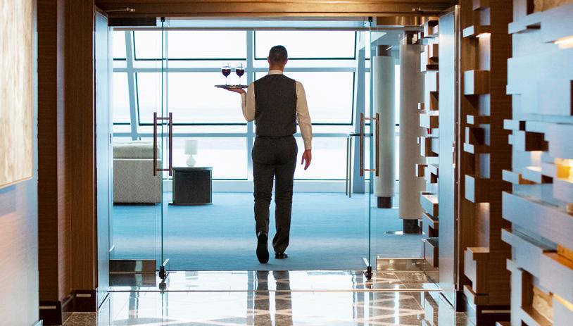 Aproveite a facilidade de embarque e desembarque prioritários. Uma vez a bordo, você será acompanhado até sua suíte, onde uma garrafa de champanhe ou vinho espumante de cortesia estará te esperando, assim como seu mordomo pessoal.