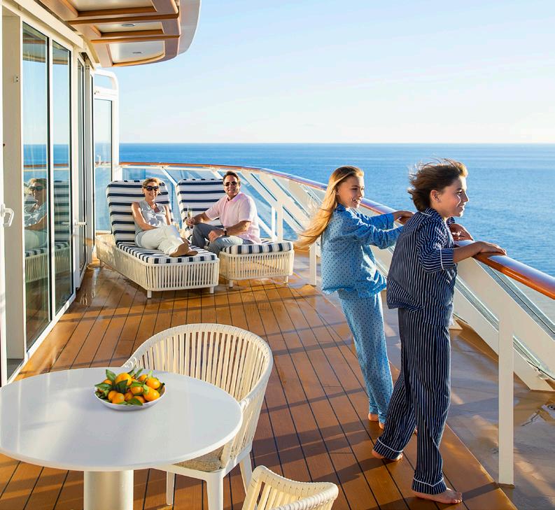 Relaxe com seus filhos em uma luxuosa suíte no The Haven ® ou viva intensamente em uma opulenta Penthouse Suite. Se você estiver trazendo membros da família que gostariam de se hospedar em outro lugar do navio, temos uma grande variedade de acomodações de proa a popa, desde as belas cabines com varanda até as Suítes com Varanda Club conjugadas. Todos se sentirão em casa - no mar..