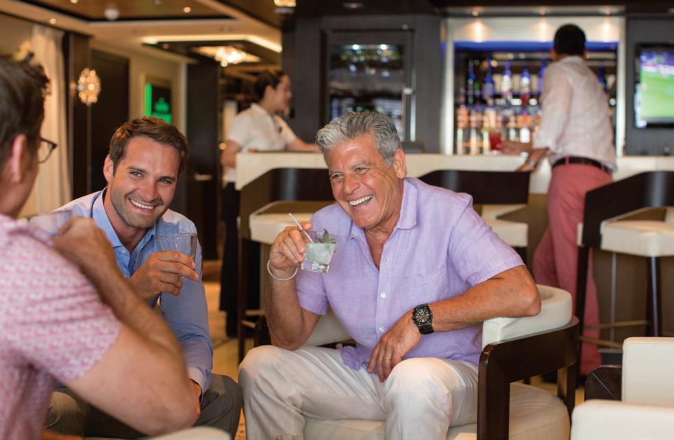 Mojito, uísque, vinho ou cerveja, seja qual for a sua bebida preferida, temos um bar ou lounge que pode prepará-la do jeito que você gosta. Relaxe à beira da piscina com uma piña colada ou à beira-mar no The Waterfront com um Cabernet Sauvignon direto de Napa no The Cellars, um bar de vinhos da família Michael Mondavi. Sinta a energia ultravioleta no Bliss Ultra Lounge ou o frio no único bar de gelo no mar. Seja para encontrar amigos ou fazer novas amizades, siga seu humor e misture-se.