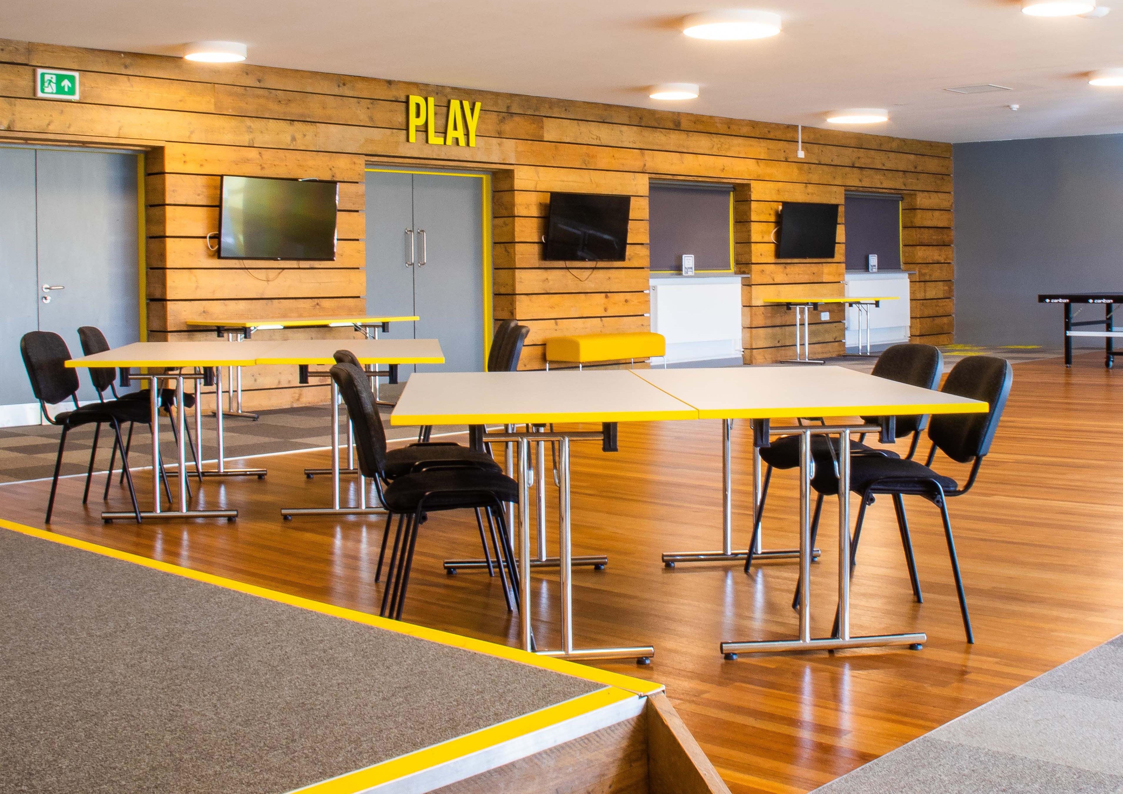Match analysis suite Meeting, briefing spaces and use of physiotherapy room Equipment including teqball, football tennis and more Catering kitchen with dining facilities for 70