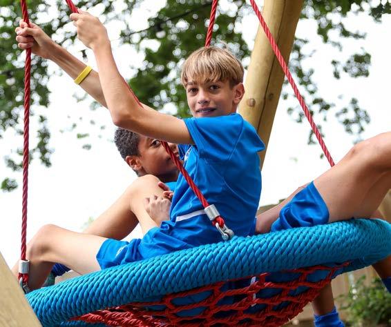 Raised walkways, treehouse, ladders, ropes, swings, slide and climbing wall