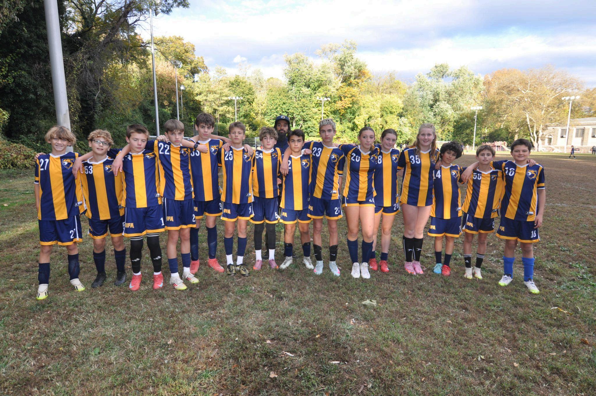 TheNFAJuniorVarsitysoccerteam,madeupoftalented 5thand6thgraders,wrappedupastrongseasonwitha 4-2-2record.Theteam’ssuccesscamefromtheir consistenteffortanddedication,practicingfourdaysa weekattheWaterTowerfield.