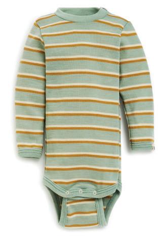 VARME GAVER: Venstre side: Hel dress i ull m/silke: 0-7 år, 586-836kr. Høyre side: Ullbody: 0-3 år, 388kr. Kortbukse i ull: 0-3 år, 195kr. Strømpebukse i ull: 9 mnd-3 år, 295kr. Hettejakke i ullfleece: 6 mnd-3 år, 730840kr.