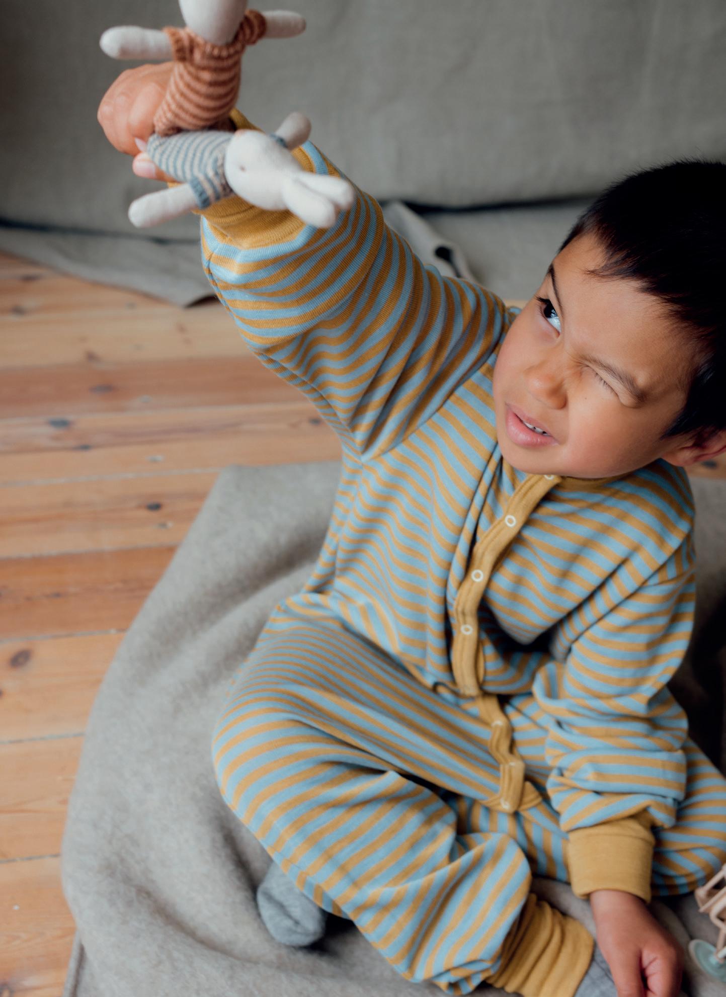 Vi lager plaggene med gode bråt på ermer og føtter, slik at de kan vokses i. Ribbuksen har flott brettekant nede og kan passe i flere sesonger. Godt for miljø og godt for lommeboken.