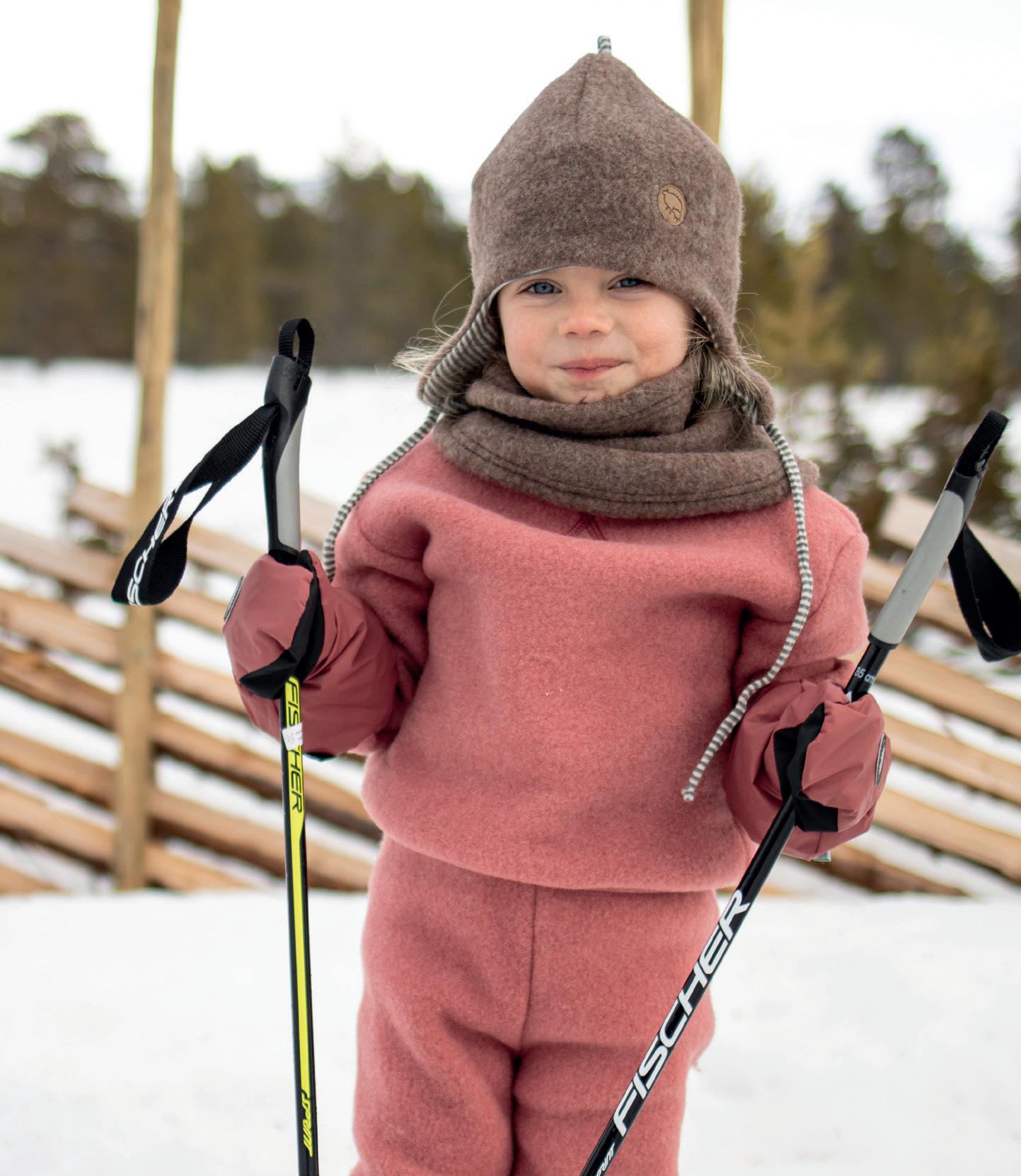 Høyre side: Ullfleecedress: 9 mnd-4 år, 958-1.088kr. Tubehals i ull m/silke: 240kr. Ullfleecelue m/vindbeskytter: 2 mnd-6 år, 498kr.