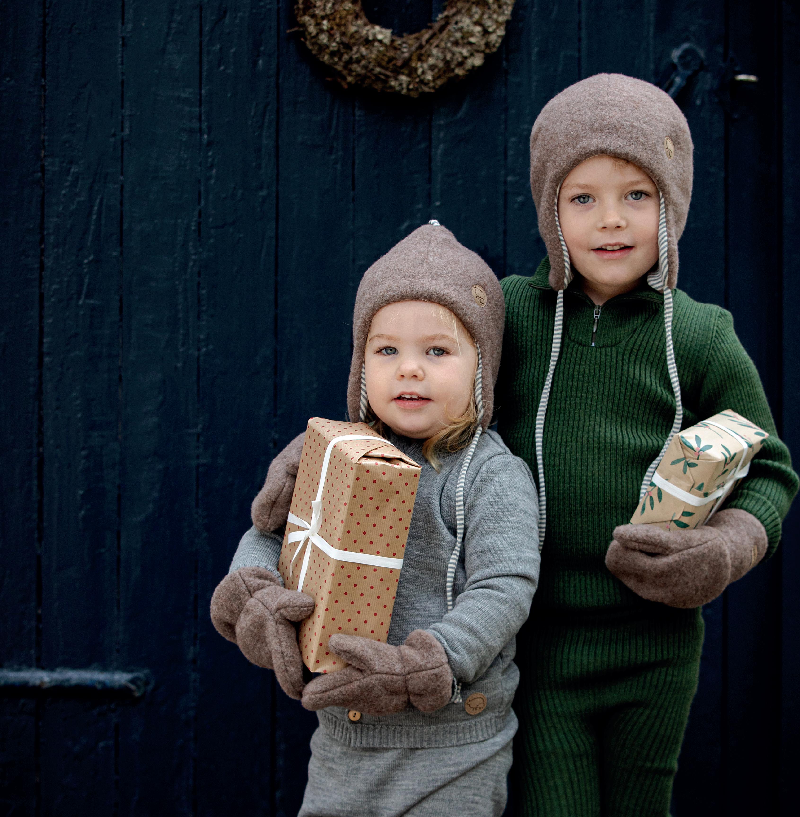 Det er noe ekte og flott over plagg laget i 100% ubehandlet ull. Derfor kan de små være julefine, og samtidig ha lune og myke ullklær på.