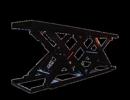 A scissor lift table is a type of lifting equipment used to raise and lower objects or materials vertically. It consists of a platform that is supported by crossed, linked arms, resembling a pair of scissors when extended.