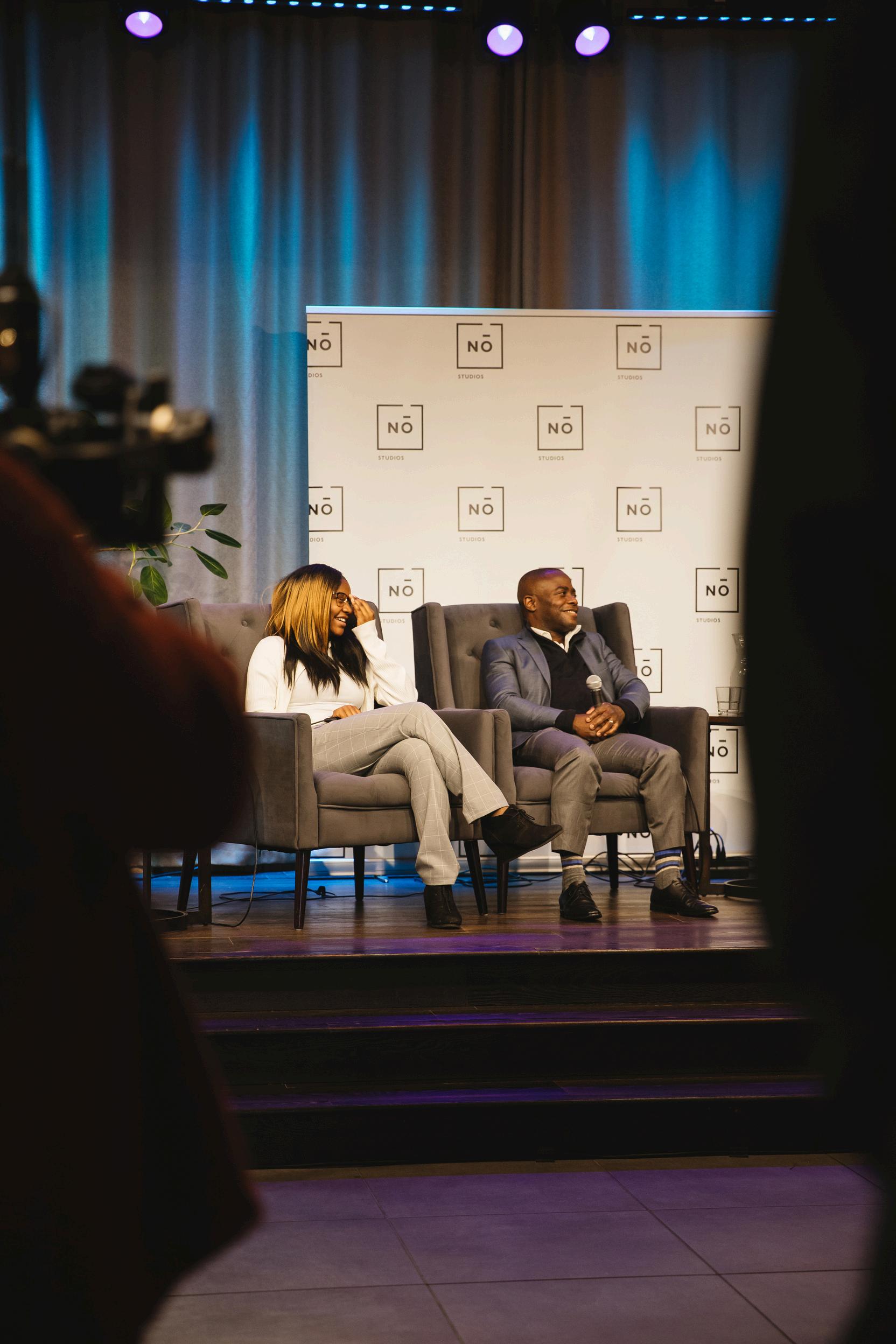 Katrina Adams, former USTA President, promoted her book, OWN THE ARENA, at Nō Studios in 2021. She was partnered with Raven Jemison, executive vice president, Milwaukee Bucks