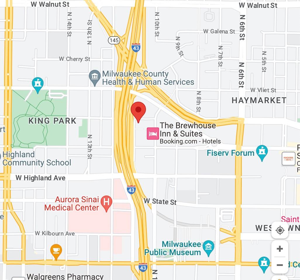 Fiserv Forum 3 minutes Brewhouse Inn Next door Downtown Hyatt Place 2 minutes Public Parking 9th Street