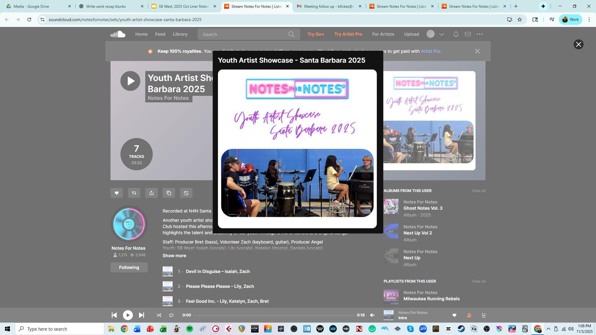 Producer Bret represented Notes For Notes at the Goleta Boys & Girls Club’s Youth Career Fair, sharing insight into careers in music, arts, and entertainment. The youth had thoughtful questions about pursuing music careers, and the takeaway was simple—trust your gut and follow your dreams, even if others don’t see the vision yet.
