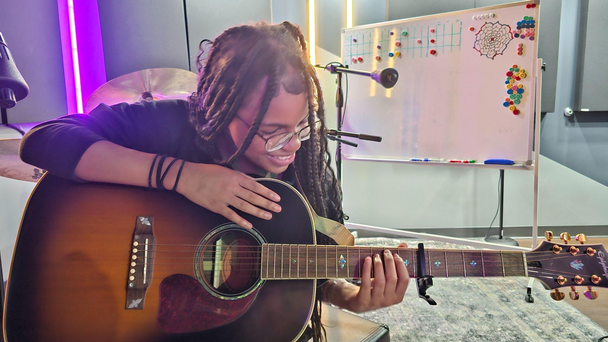Gianna couldn’t stop smiling when playing her first notes and chords on guitar. She started by learning how to play along with K-Pop artist wave to earth and is working through some of her other favorites