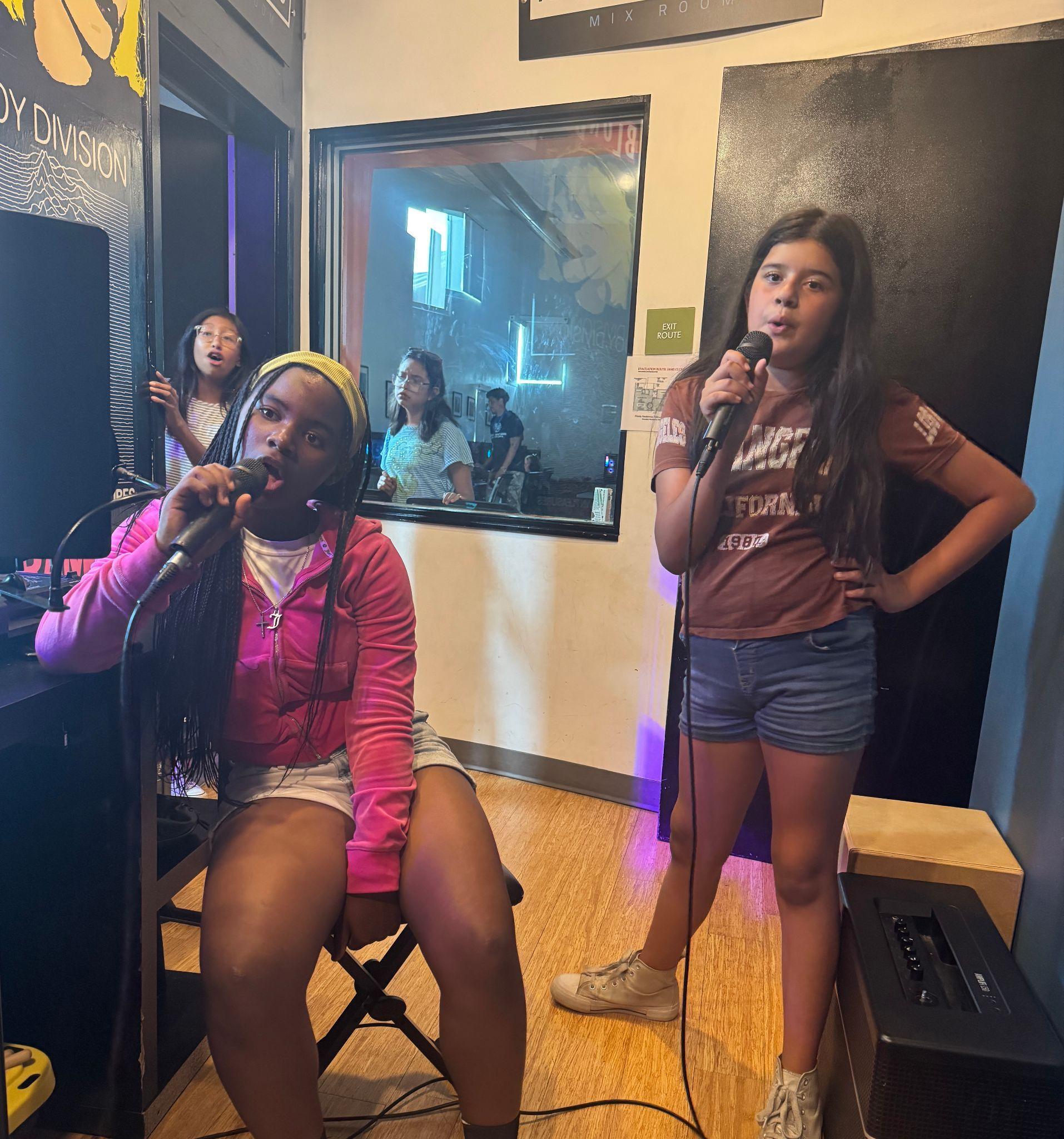Shay, Angelise, and Emily sing their favorite Bruno Mars tunes on Karaoke Day during JAMS Day Camp. When school is out, we have all day to make music and sing our favorite songs! We might even be planning a special field trip on one of the next Day Camps… Ask about the MVG Artist/Engineer visit coming up in November!