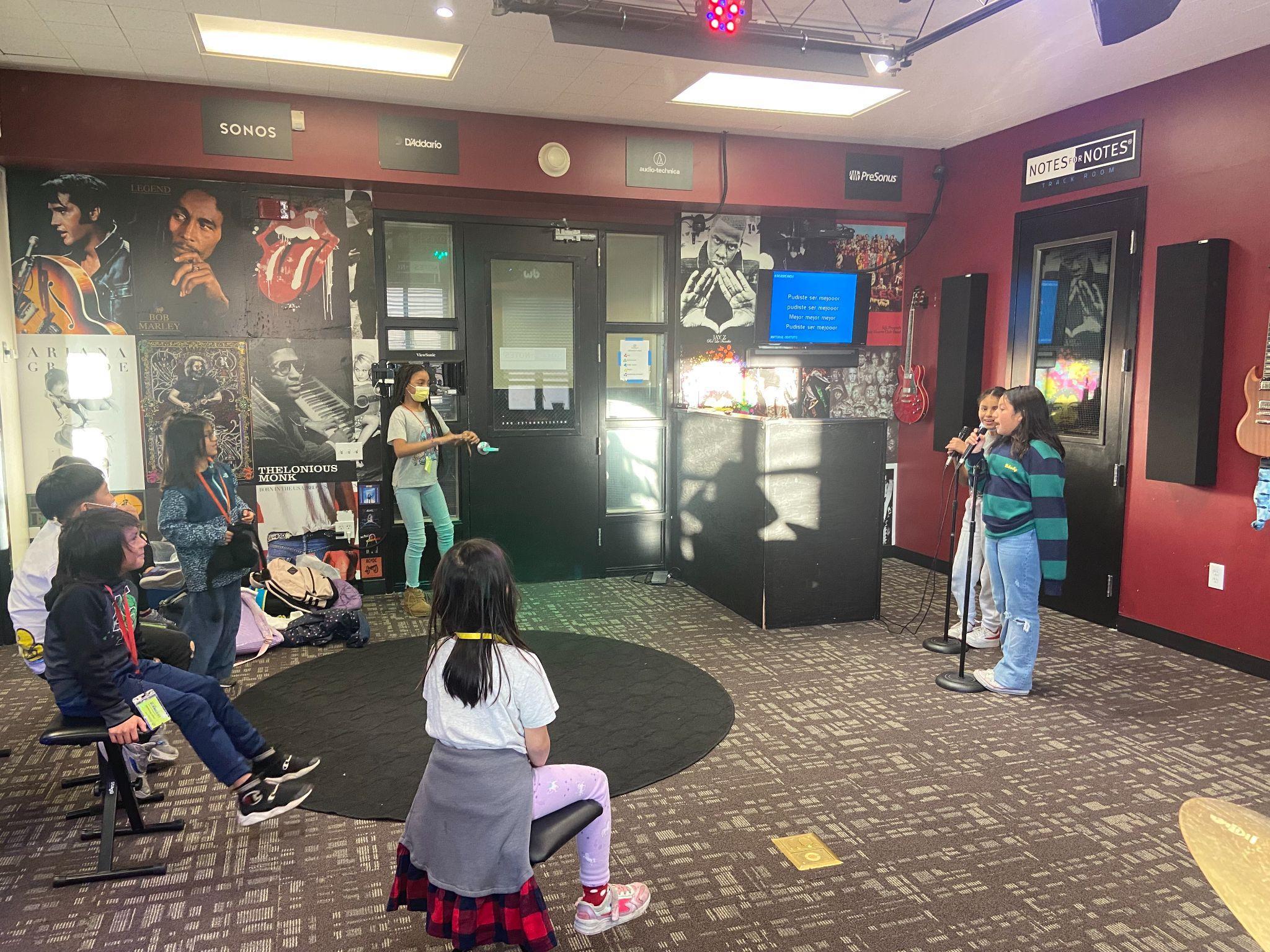 Samyra, Genesis, Krisabelle, and Alyssa take a break from recording to walk aroundJapantown!SamyraandAlyssawere excited to find some merch from their favoriteartists,includingBTScoffee!