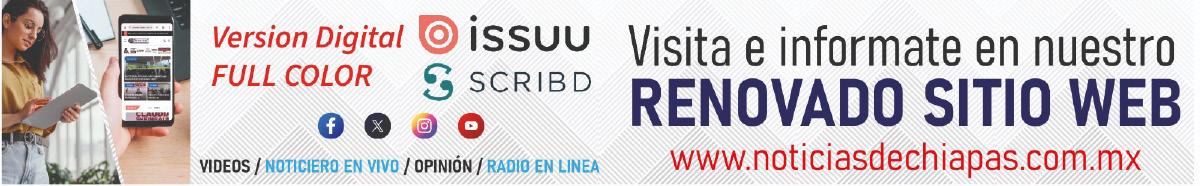 Noticias de Chiapas El poder de la noticia, se imprime en los talleres de Editorial La Estrella, S.A. de C.V., con domicilio en 2a. Av.Sur Número 100 C.P. 30700, Tapachula, Chiapas.