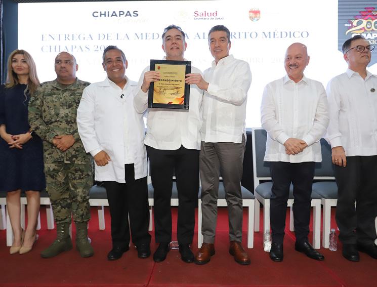 Al expresar su orgullo por la instauración de la Medalla al Mérito Médico y enaltecer el trabajo que el personal de salud llevó a cabo durante la pandemia de Covid-19, el mandatario sostuvo que el sistema de salud pública de Chiapas se ha transformado y seguirá fortaleciéndose porque tienen en el senador José Manuel Cruz Castellanos a un aliado que impulsará reformas a favor del bienestar y la salud de la entidad y del país.