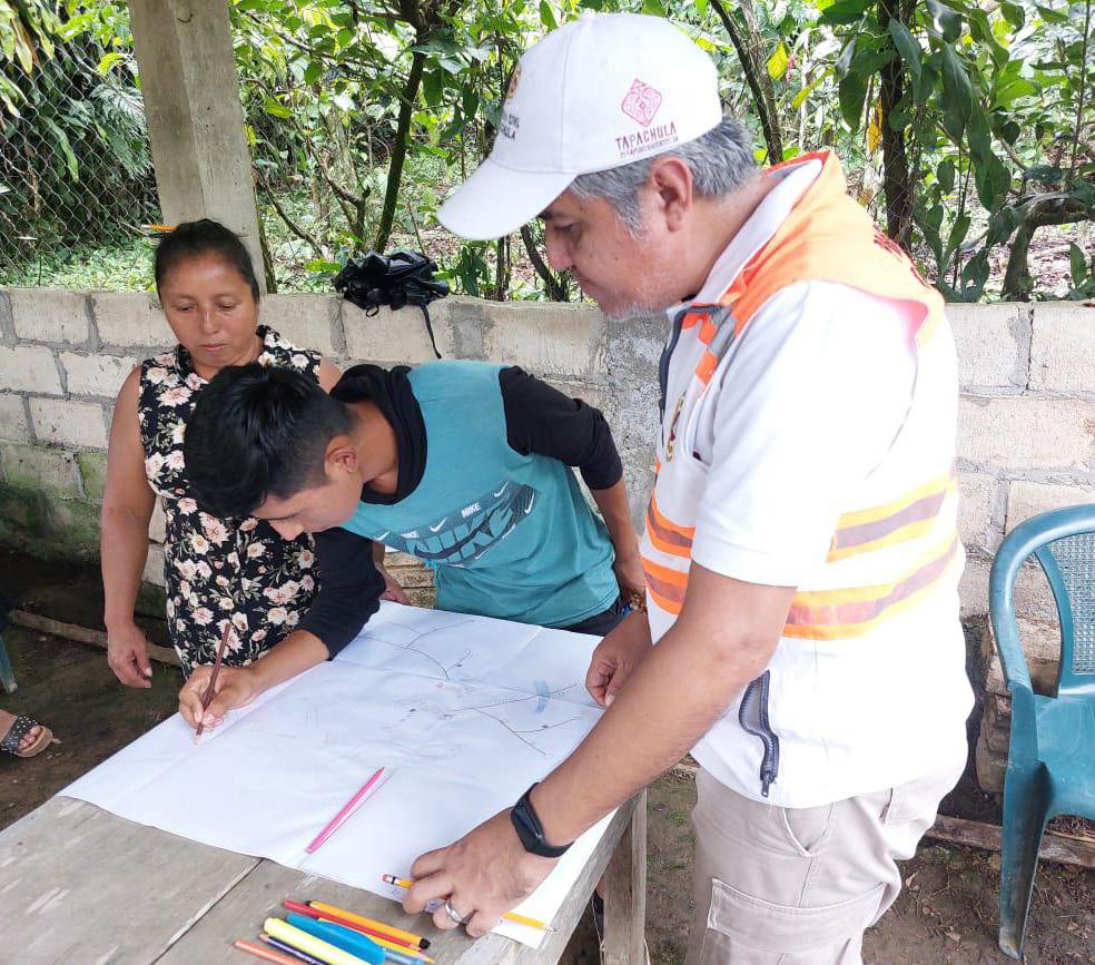 Tapachula, Chiapas, 05 de septiembre.- El Ayuntamiento de Tapachula a través de la Secretaría de Protección Civil Municipal (SPCM), capacitó a los integrantes del Comité Comunitario de Protección Civil de la fracción San Juan Chicharra además de instrumentar el Plan de Prevención y Resiliencia Comunitaria, dio a conocer el titular de la dependencia, Herbert Schroeder Bejarano. Explicó que de acuerdo a las instrucciones de la presidenta municipal de Tapachula, Gladiola Soto Soto, la SPCM, inició la capacitación de los once integrantes con el tema de primeros auxilios a fin de proporcionar los conocimientos necesarios para la