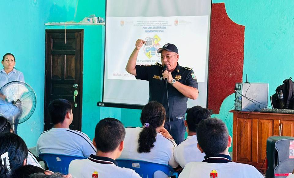 Mapastepec, Chiapas, 05 de septiembre 2024.- Siguiendo con las pláticas de prevención en comunidades, barrios e Instituciones Educativas, la Delegación de Seguridad Turística y Vial de Mapastepec que Coordina Martin Mendoza Ramon brindaron el curso “POR UNA CULTURA DE PREVENCIÓN VIAL” a los alumnos y personal docente del Colegio de Bachilleres numero 269 en la comunidad de Adolfo López Mateos.