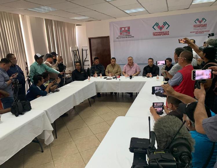 Acompañado de altos mandos de la Secretaría de Seguridad Pública del Pueblo (SSPChiapas), de la Fuerza de Reacción Inmediata Pakal (FRIP), la policía fronteriza, ministerial y de investigación, así como transito estatal, y secretaría de seguridad Pública municipal, González Orantes, destacó que esta labor robustecida se realiza bajo el mando del gobernador de