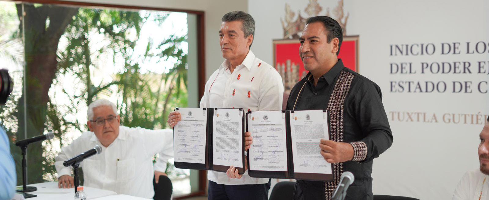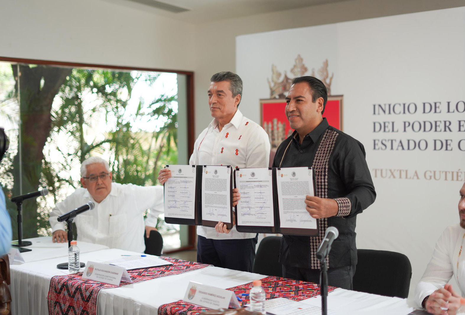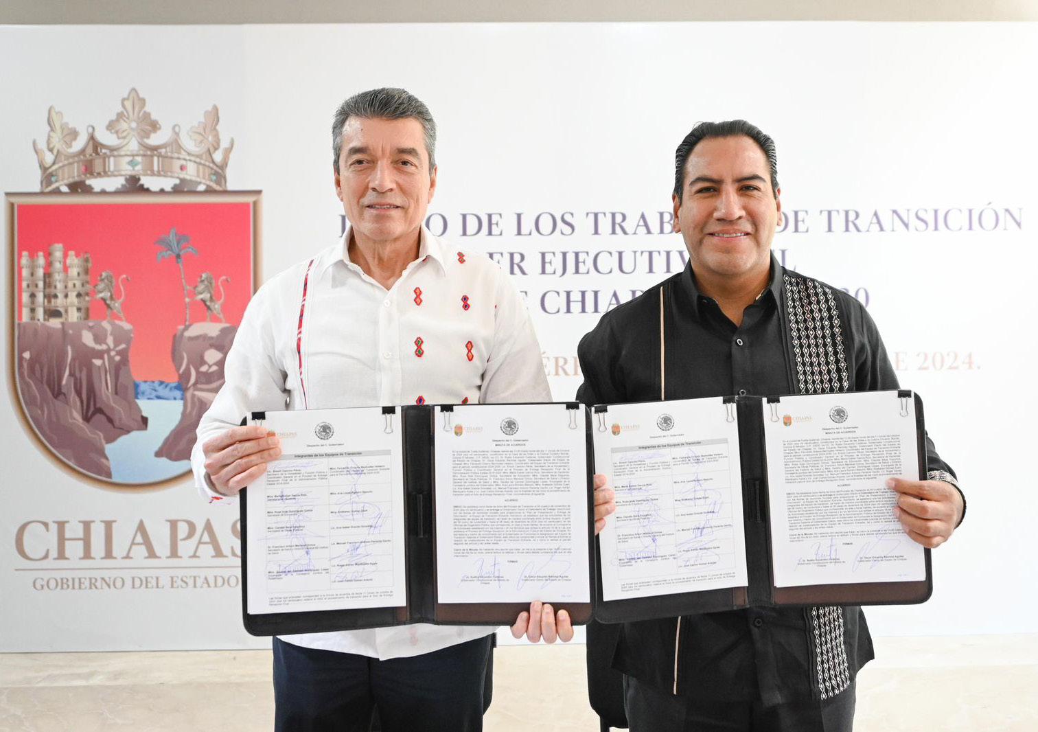 En esta reunión, el gobernador constitucional y el gobernador electo firmaron una minuta de acuerdos, como lo establece la ley. Rutilio Escandón felicitó al gobernador electo por su destacada trayectoria política y administrativa, enfatizando que fue el candidato más votado en la historia de Chiapas, lo que