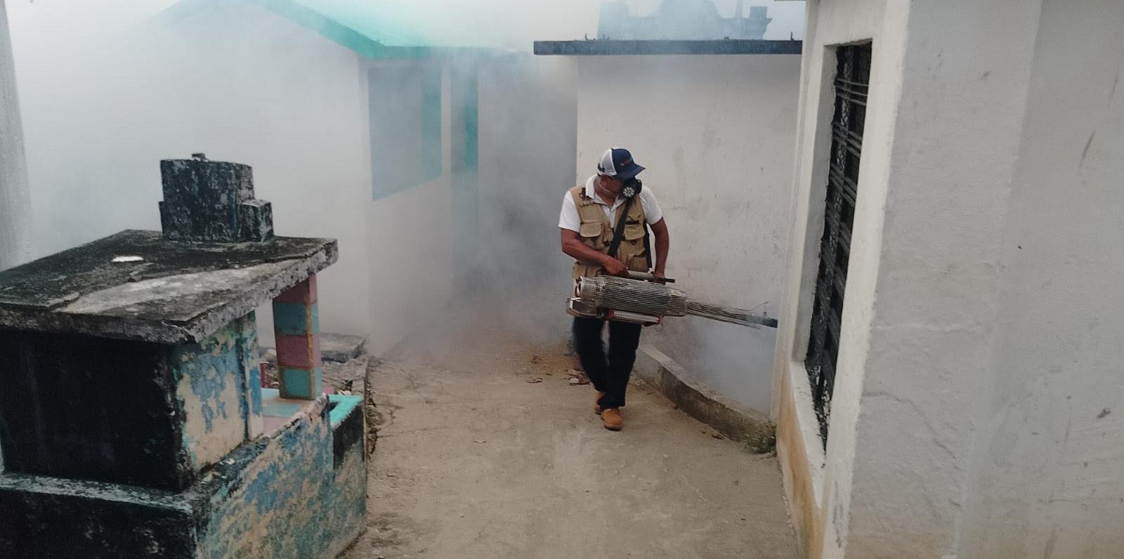 Huixtla, Chiapas; 11 de octubre de 2024.- El Alcalde de Huixtla, Régulo Palomeque Sánchez, a través de la Dirección de Vectores de la Secretaría de Salud Municipal, llevó a efecto la fumigacion del panteón Municipal: andadores, Capilla, espacios verdes, jardineras, así como cualquier punto que pudiese considerarse foco de rojo.