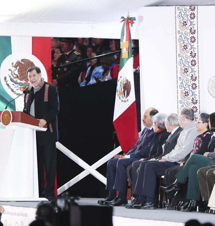 Obras Públicas, Claudia Baca Esquinca; la encargada de la Consejería Jurídica, Sandra del Carmen Domínguez López; el coordinador de transición de la Nueva Era, Fernando Octavio Bermúdez Velasco; Ana Laura Romero Basurto; Roger Adrián Mandujano Ayala; Anakaren Gómez Zuart; Manuel Pariente Gavito; Ana Isabel Granda González; y Juan Carlos Gómez Aranda.