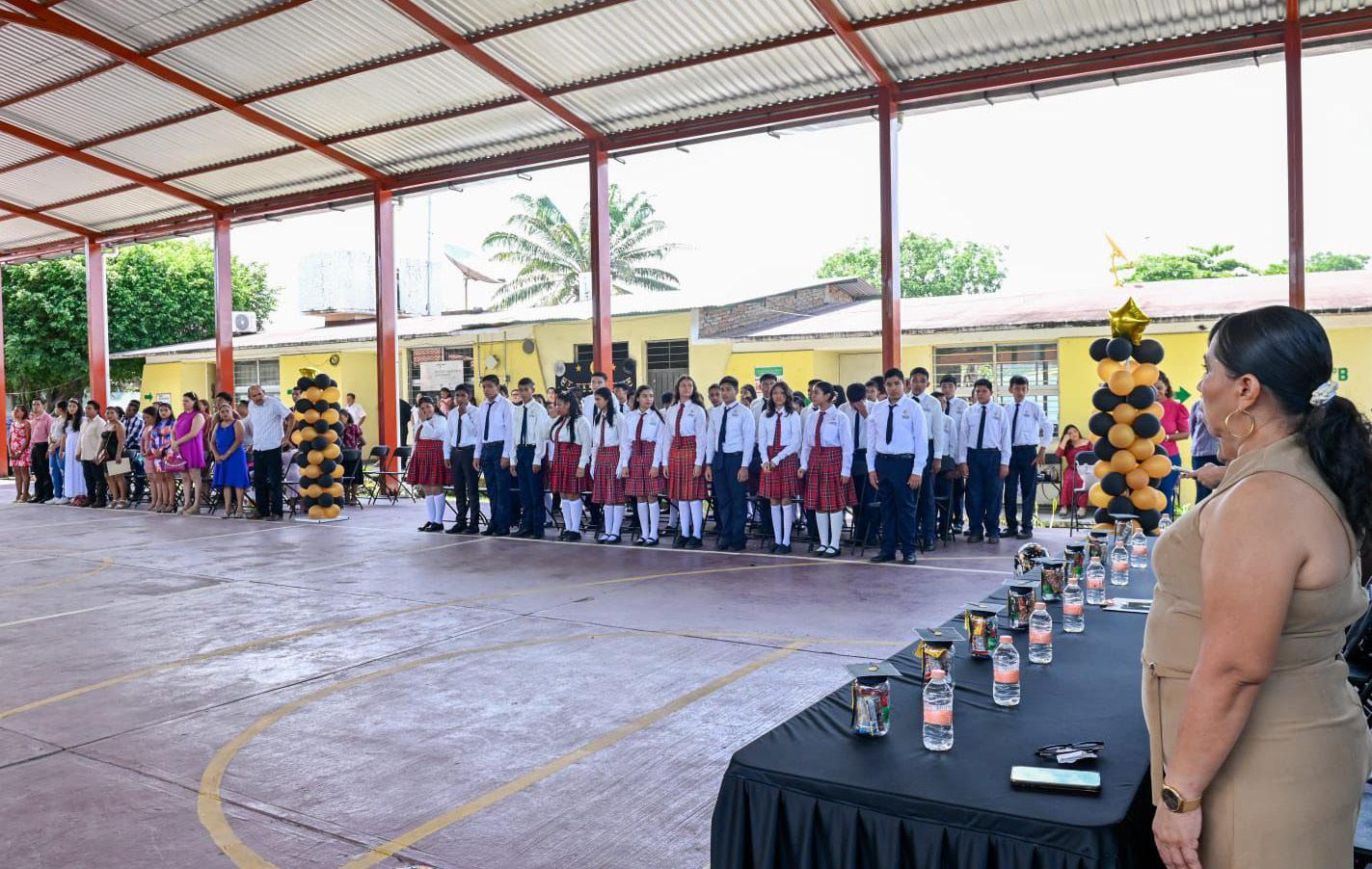 Ante la presencia de los directivos de la institución, docentes, administrativos, padres de familia y estudiantes, Sandoval Tapia reconoció y felicitó a los familiares de los egresados por respaldarlos y apoyarlos a culminar su educación básica.