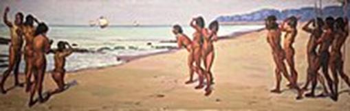 LLEGADA A AMÉRICA (1923), ÓLEO SOBRE LIENZO DE CAMILO EGAS EL VIAJE DE CRISTÓBAL COLÓN NO RESULTÓ FÁCIL PARA NADIE, DE HECHO HUBO CONATOS DE AMOTINAMIENTO, PERO GRACIAS A LA PRESENCIA Y LAS DOTES DE MANDO DE MARTÍN ALONSO PINZÓN SE CONSIGUIERON RESOLVER ESTAS SITUACIONES. CUANDO YA