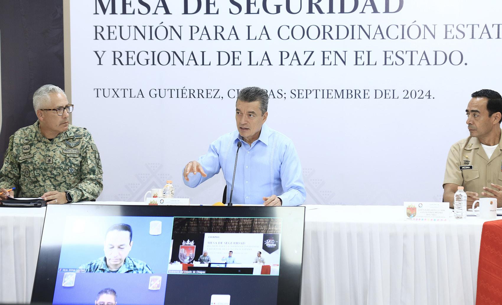 Durante la Mesa de Coordinación para la Construcción de la Paz y la Seguridad en Chiapas, el gobernador Rutilio Escandón Cadenas reconoció el comportamiento civilizado y responsable de la sociedad y la labor comprometida de las autoridades con el fin de que las fiestas patrias, que se desarrollaron del 13 al 16 de septiembre, transcurrieran en orden y en paz.