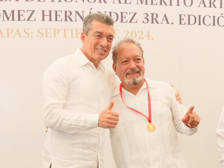 Durante la entrega de la Medalla de Honor al Mérito Artesanal Franco Lázaro Gómez Hernández 3ª. Edición, a los hermanos Nandayapa Vargas, reconocidos por la elaboración y construcción de marimbas en Chiapas, el gobernador Rutilio Escandón Cadenas felicitó y enalteció el aporte, la creatividad y el talento que este grupo de artesanos y compositores chiapacorceños han brindado a la cultura del estado, al ser grandes defensores de este legado musical desde hace más de 100 años.