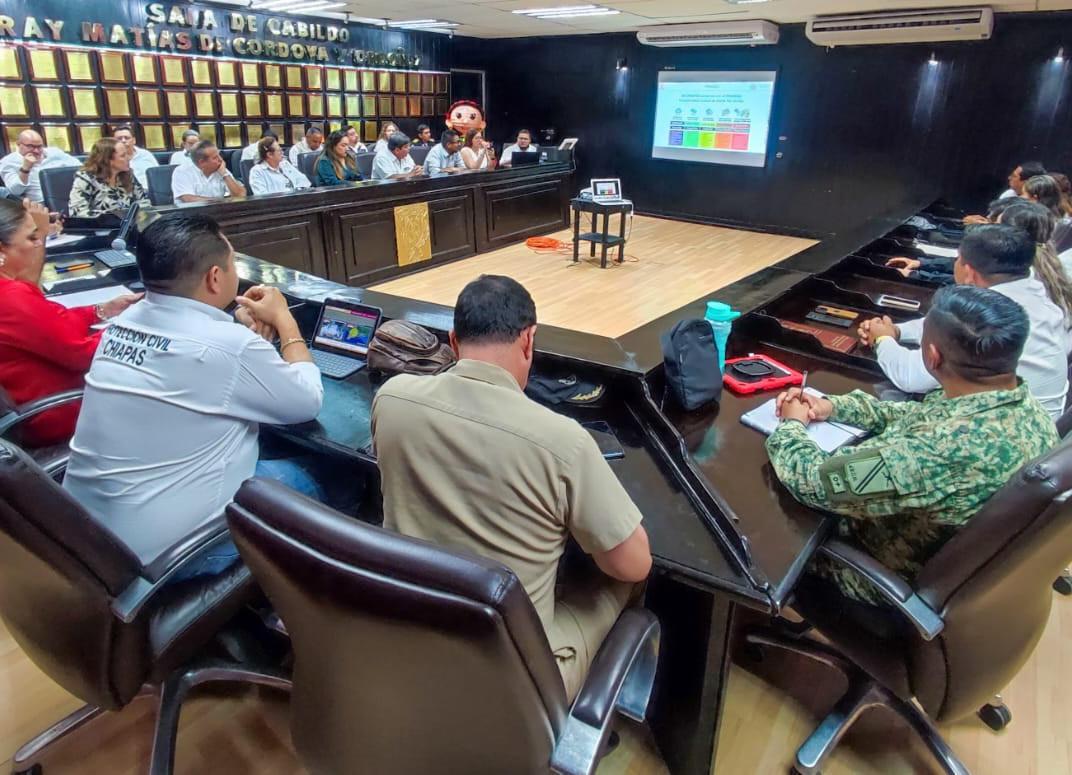 • La presidenta municipal de Tapachula, Gladiola Soto Soto encabezó la reunión donde se acordaron medidas preventivas para garantizar la seguridad e integridad patrimonial de los tapachultecos.