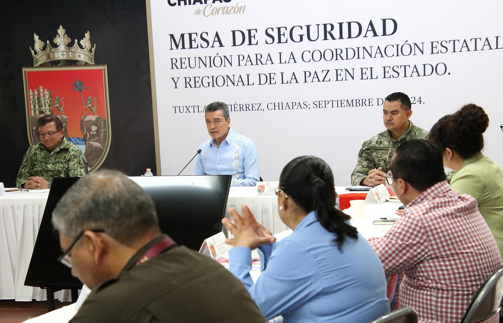 Paz y la Seguridad, el gobernador Rutilio Escandón Cadenas informó que continuarán las intensas lluvias en Chiapas, principalmente en las regiones Soconusco, Istmo Costa, Altos Tsotsil Tseltal, Norte y Selva, por lo que exhortó a la población a atender las recomendaciones preventivas a fin de evitar riesgos.