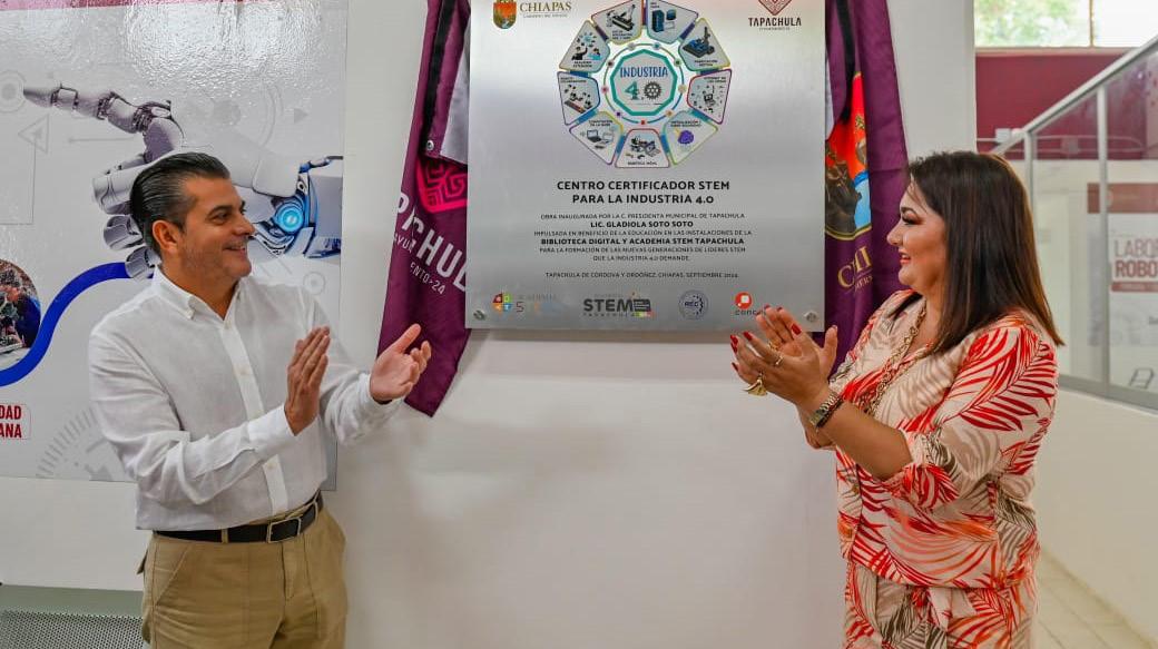 Tapachula, Chiapas, 24 de septiembre.- El Ayuntamiento de Tapachula que preside la alcaldesa Gladiola Soto Soto, inauguró la biblioteca digital y Academia STEM, con la que se beneficia al sector educativo, empresarial, turístico, comercial y de negocios entre otros rubros.