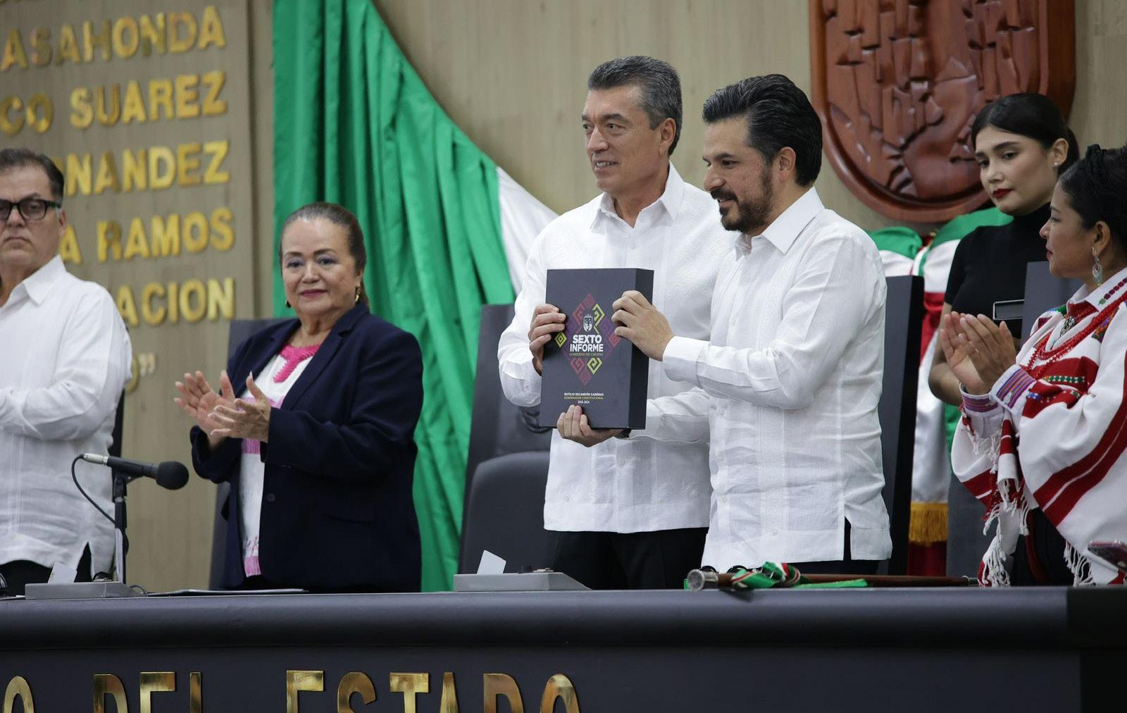 Tuxtla Gutiérrez, Chiapas, 24 de septiembre de 2024.- En representación del presidente de México, Andrés Manuel López Obrador, el director general del Instituto Mexicano del Seguro Social (IMSS), Zoé Robledo, asistió al sexto informe de actividades del gobernador de Chiapas, Rutilio Escandón Cadenas, ante el Congreso del Estado. En su mensaje, Zoé Robledo resaltó que la administración de Rutilio Escandón se definió por el trabajo humanista y ejercer el gasto público con responsabilidad, austeridad y transparencia en beneficio de los