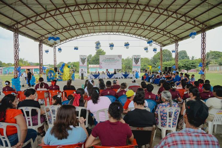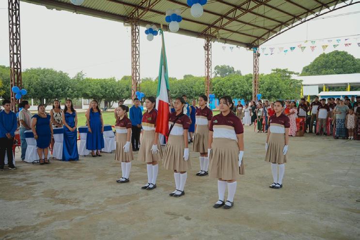 calidad. Finalmente, la alumna egresada Karla Jazly García de Paz ofreció unas palabras en nombre de sus compañeras y compañeros, agradeciendo el acompañamiento de sus docentes y familias durante su trayectoria académica y concluyendo con un reconocimiento al valor de la educación comunitaria, como herramienta de transformación para su entorno.