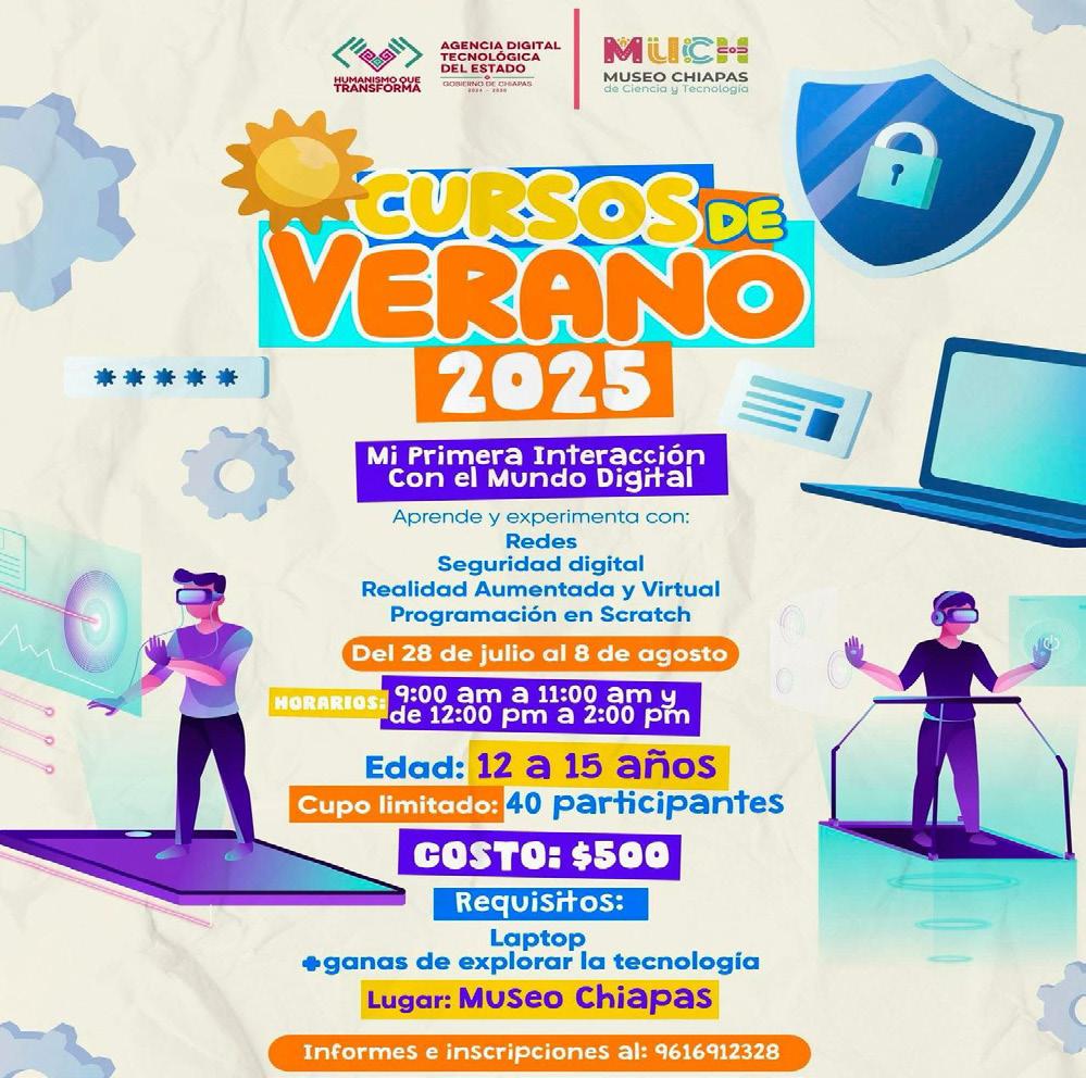 Tuxtla Gutiérrez, Chiapas; 15 de julio de 2025.- En el marco de su programa de verano 2025, la Agencia Digital Tecnológica del Estado (Aditech), que encabeza Jovani Salazar Ruiz, anunció una serie de cursos innovadores dirigidos a niñas, niños y jóvenes de 6 a 15 años, con el objetivo de fomentar el interés por la ciencia y la tecnología desde edades tempranas.
