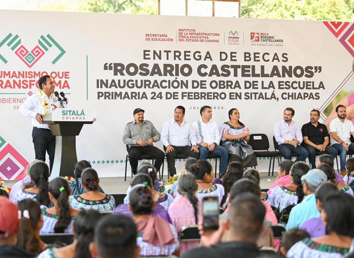 En esta ocasión, el mandatario entregó becas Rosario Castellanos a personas inscritas en el programa de alfabetización Chiapas Puede, subrayando que el aprendizaje de la lectura y la escritura es clave para transformar la realidad de las comunidades.