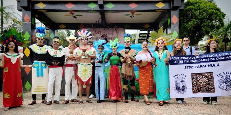 El grupo, dirigido por la maestra Gabriela Guadalupe López López, fue reconocido por su talento, disciplina y amor por la cultura chiapaneca. Asimismo, se agradeció el respaldo de madres y padres de familia que acompañaron esta presentación artística. P. 5