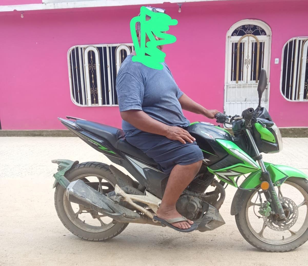 Artemio Tovilla llegó muy temprano al camposanto a fumigar y dejo su motocicleta ZE Color verde con negra, modelo 2020 sin placas de circulación al interior del panteón municipal por la parte del descanso que está en la parte de arriba.