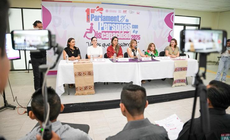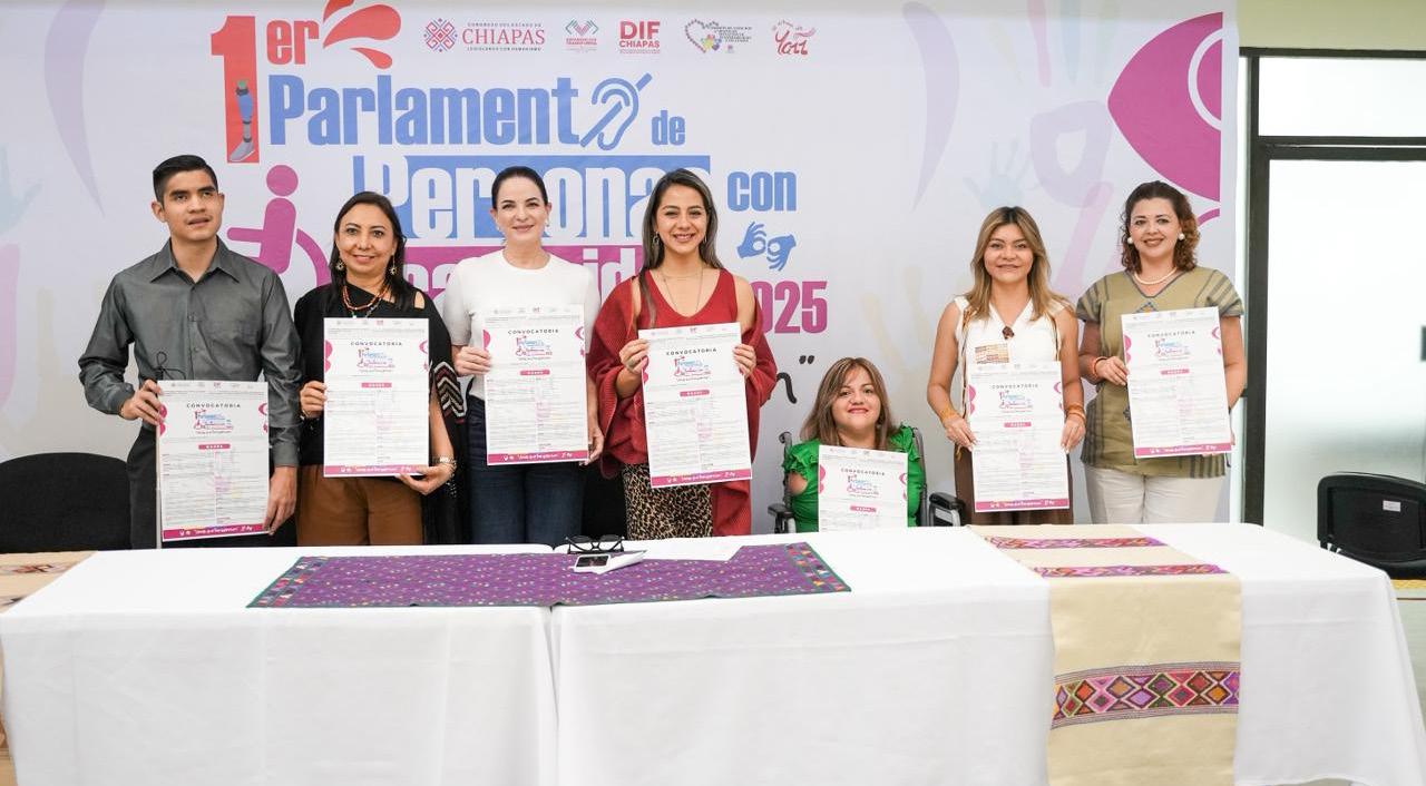 Tuxtla Gutiérrez, Chiapas; 14 de noviembre de 2025.- La señora Sofía Espinoza Abarca, esposa del gobernador Eduardo Ramírez Aguilar, en coordinación con la diputada Luz María Castillo Moreno, presidenta de la Comisión de Atención a Grupos en Situación de Vulnerabilidad e Inclusión, presentaron la convocatoria para la realización del Primer Parlamento para Personas con Discapacidad “Voces que Transforman”.