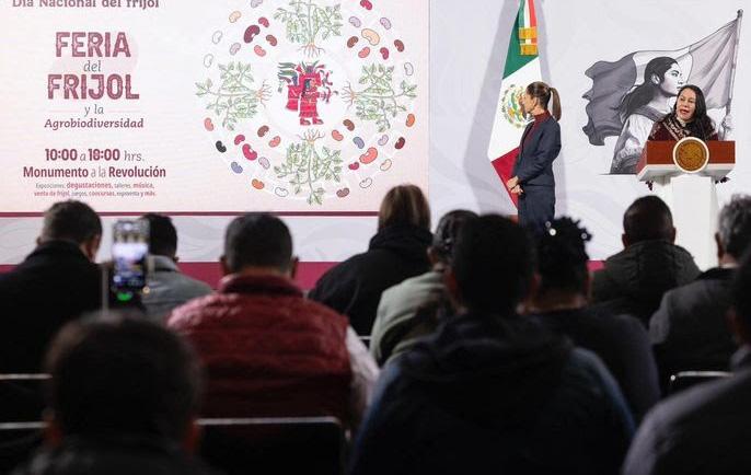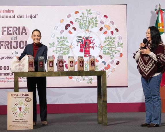 En el marco del Día Nacional del Frijol, el Gobierno de México, a través de Alimentación para el Bienestar, presentó Frijoles Bienestar, en sus variedades negro y pinto, que tiene el objetivo es garantizar la conservación de las semillas y que los productores vivan bien, para ello se implementan acciones como la compra de las cosechas con precios justos y su distribución a través de las Tiendas Bienestar, con un precio de 30 pesos por kilo. La Presidenta de México, Claudia Sheinbaum Pardo, como parte de las acciones de Frijoles para el Bienestar, invitó a las mexicanas y mexicanos a asistir y participar en la Feria del Frijol y la Agrobiodiversidad que se realizará, este 14 y 15 de noviembre en el Monumento a la Revolución, de 10:00 a 18:00 horas, donde se tendrá la presencia de productoras y productores de Zacatecas, Durango y Nayarit, además de que habrá exposiciones, degustaciones, talleres, música, venta, juegos, intercambio de saberes...