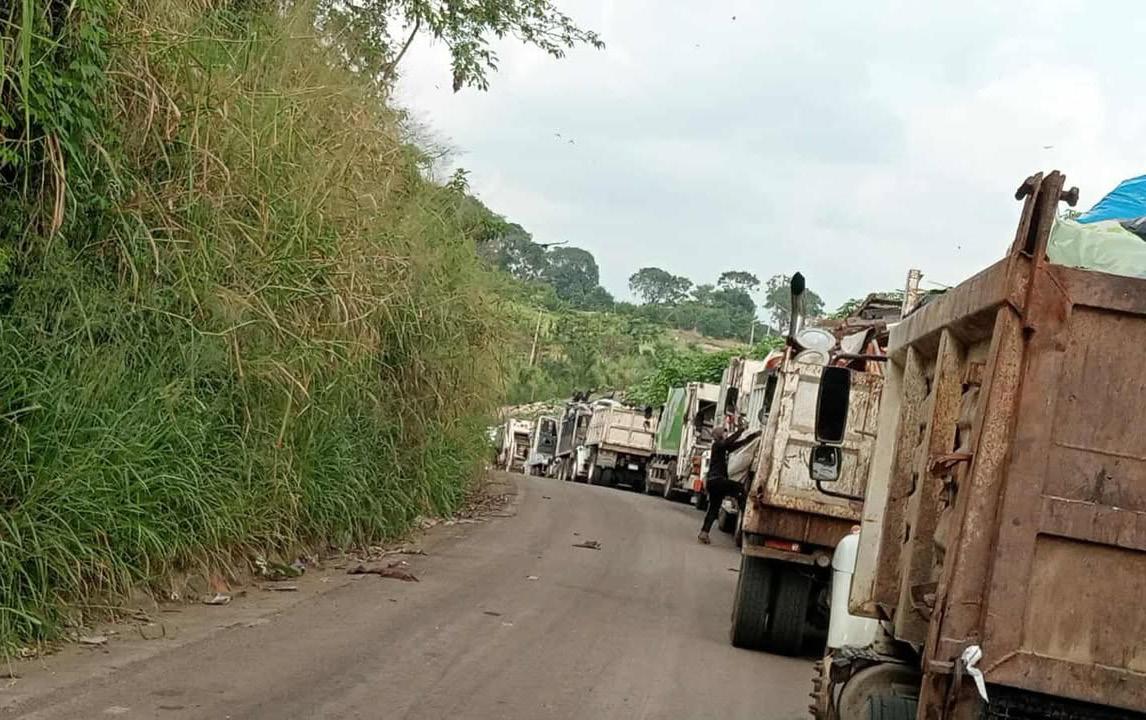 Tapachula, Chiapas, 13 de noviembre de 2025.Choferes de los camiones recolectores de basura denunciaron que la falta de maquinaria pesada en el basurero municipal los obliga a esperar durante horas para poder descargar los desechos, una situación que se ha normalizado sin que las autoridades intervengan.