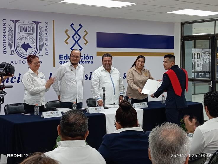 También estuvieron presentes la Mtra. Brenda del Rosario Gutú Corello, Responsable del Área de Calidad Institucional; el Dr. León Felipe Solar Fonseca; y la CP Adriana Patricia Navarro Gutiérrez, Coordinador y Secretaría Académica del CECOCISE. Durante su discurso, el Dr. León Felipe instó a los egresados a seguir apoyando los intereses de la sociedad como parte de su deber moral. Los interesados en cursar la Licenciatura en Derechos Humanos aún tienen hasta el final del mes de abril para obtener su ficha a través del sitio web www.aspirantes.unach.mx.