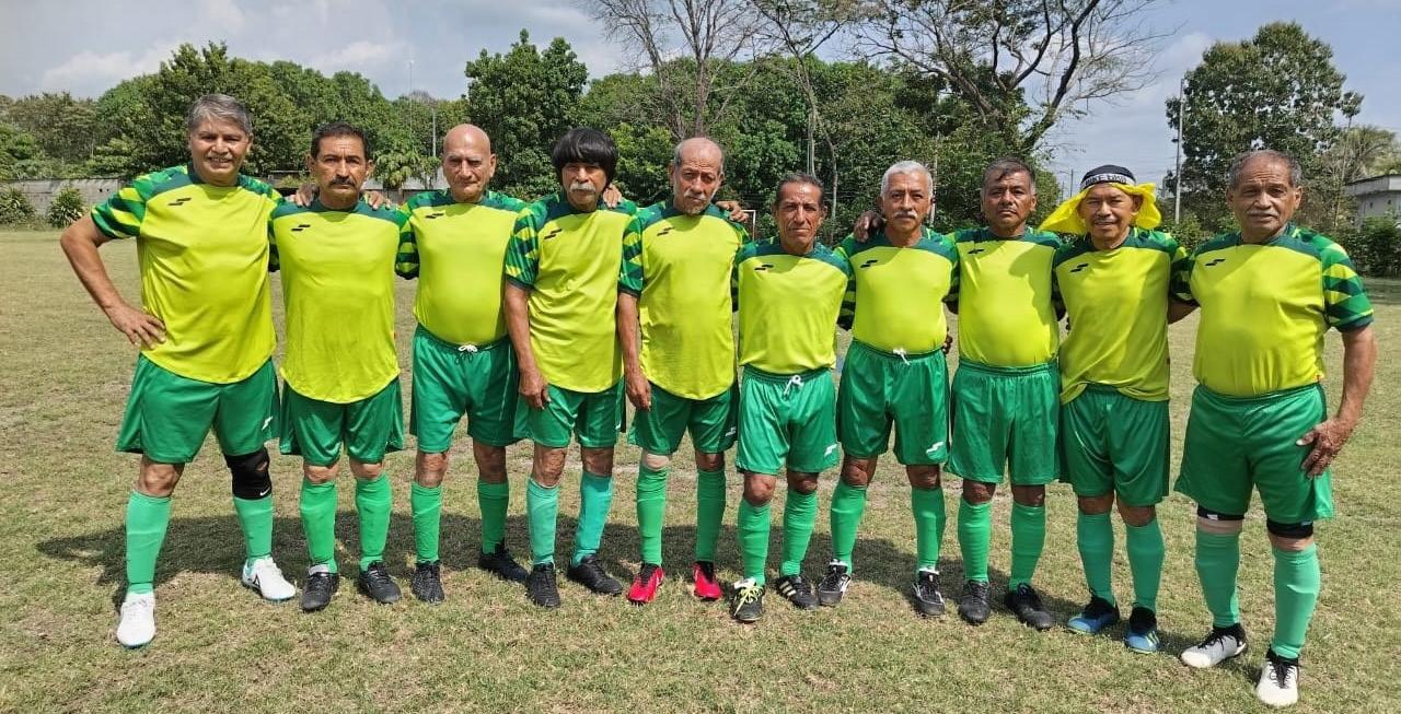 Huixtla, Chiapas; 1 de mayo de 2025.La oncena del Deportivo Esmeralda, derrota 5-1 al Deportivo Ámbar, en la tarde del pasado sábado, en la grama del estadio Anahuac, en lo que fue la fecha uno del Torneo de Copa 2025, en la categoría libre varonil, de la liga de fútbol Huixtla AC, que preside Hamilton Silva Arrazola.