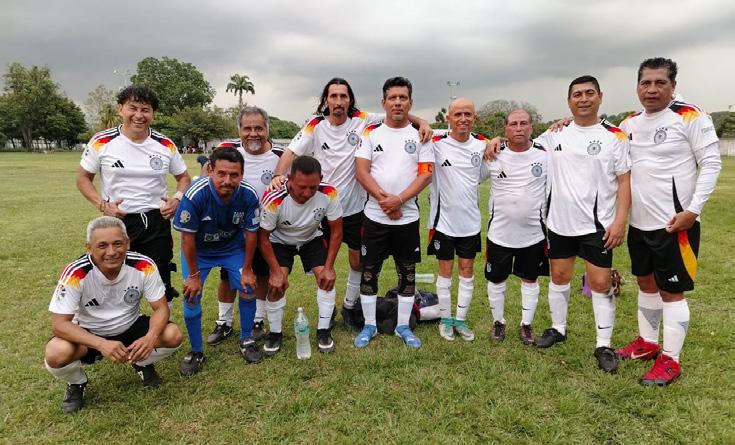 Tapachula, Chiapas; 10 de abril de 2025.-En buen encuentro, Necaxa y Deportivo Imaplas comparten puntos, al igualar 2-2, ayer por la tarde, en el campo Córdova Uno, en lo que fue la fecha 2 del Torneo de Liga 2025, en la categoría veteranos oro del Córdova.
